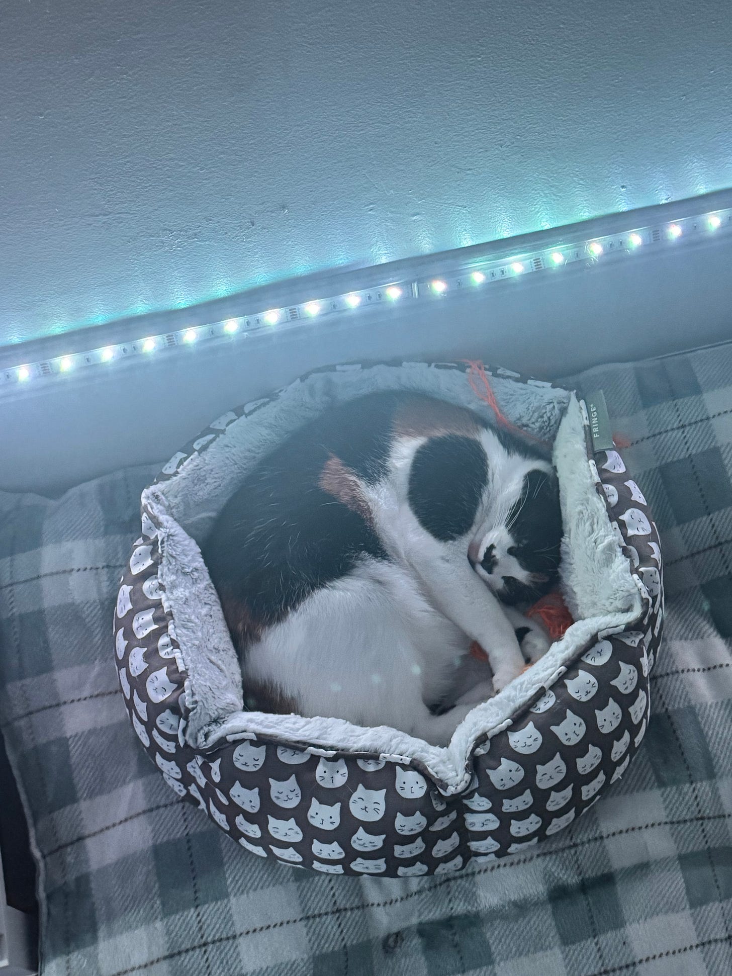 We weren’t expecting to get another cat so soon, but she was being fostered by the daughter of someone who works adjacent to my husband’s department, and that lady was kind enough to let him know, in case we’d be interested. So, we got her, and having a cat in the house again lifted everyone’s spirits.