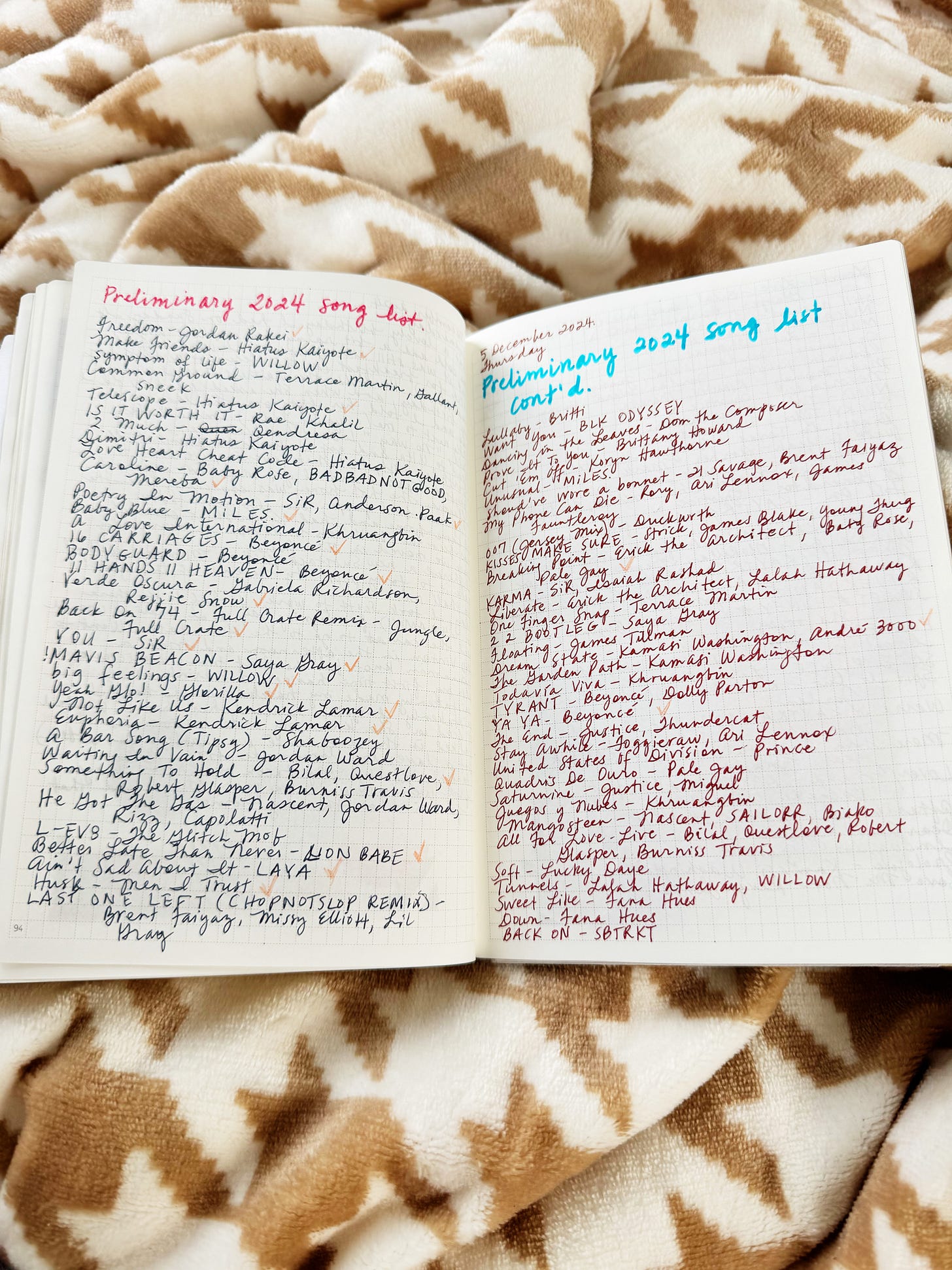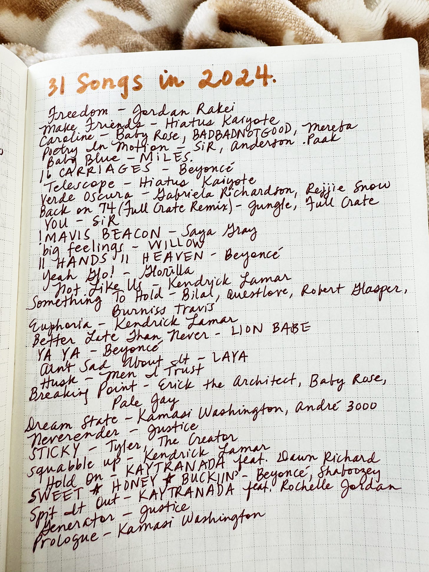 My preliminary list of favorite songs of 2024. Three pages worth!