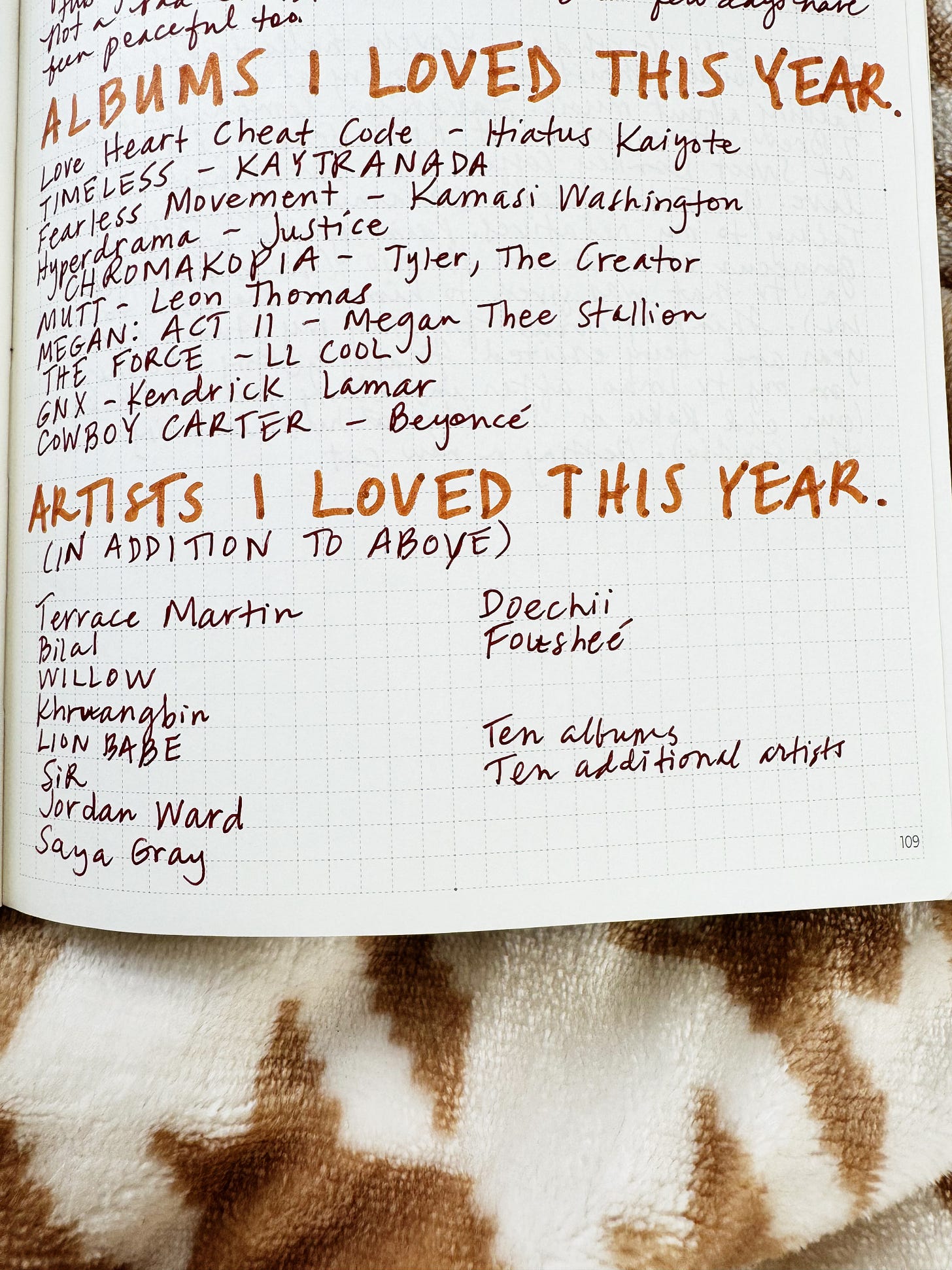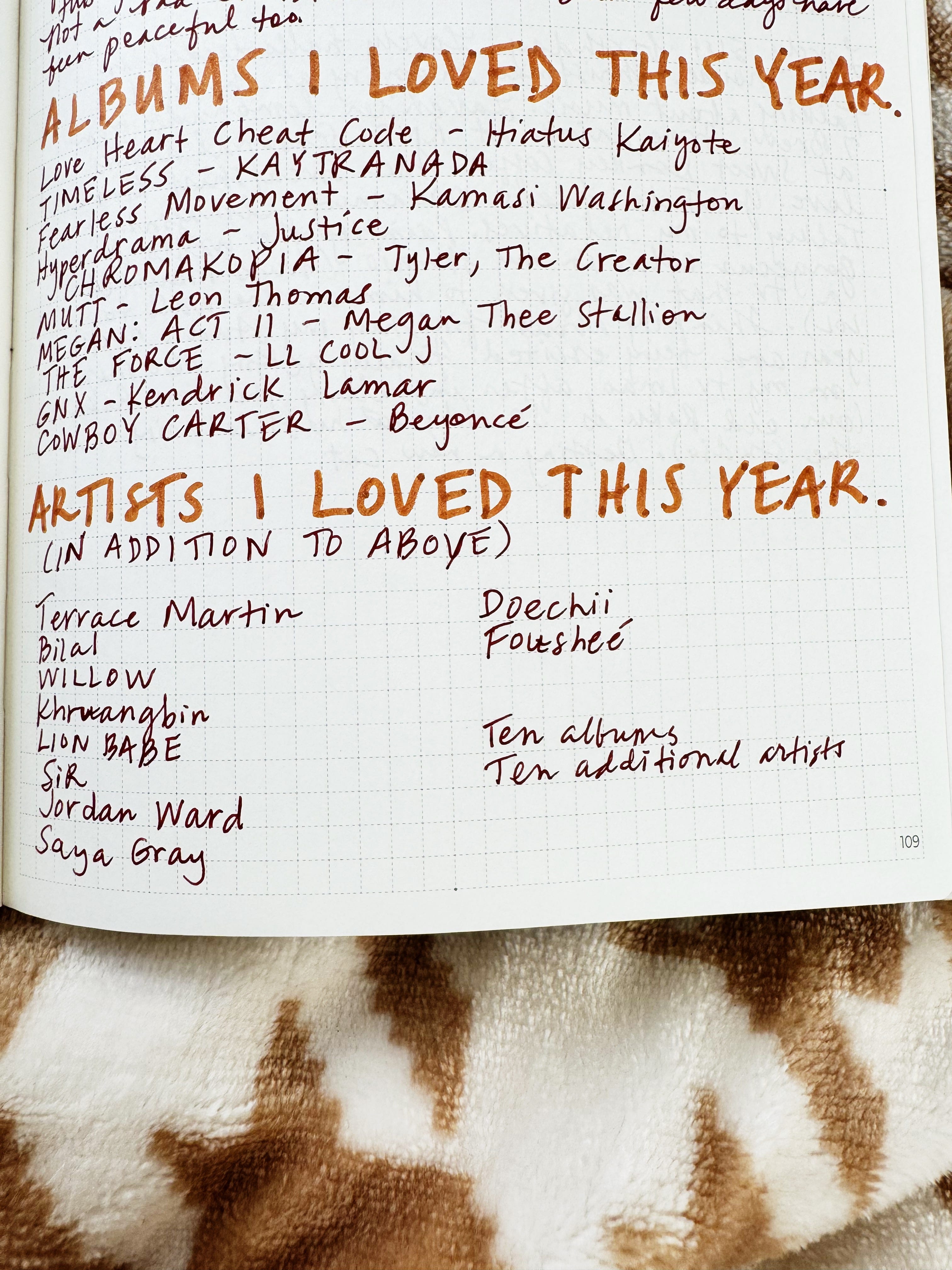 As you know, music gets me through a lot, a lot of the time. According to my year-end streaming reports, I listened to over 88,000 minutes of music in 2024, which is actually kind of low for me. But I did keep up with my monthly lists faithfully (I’m glad I do these, because it helps me remember so much), and got my yearly lists done too.